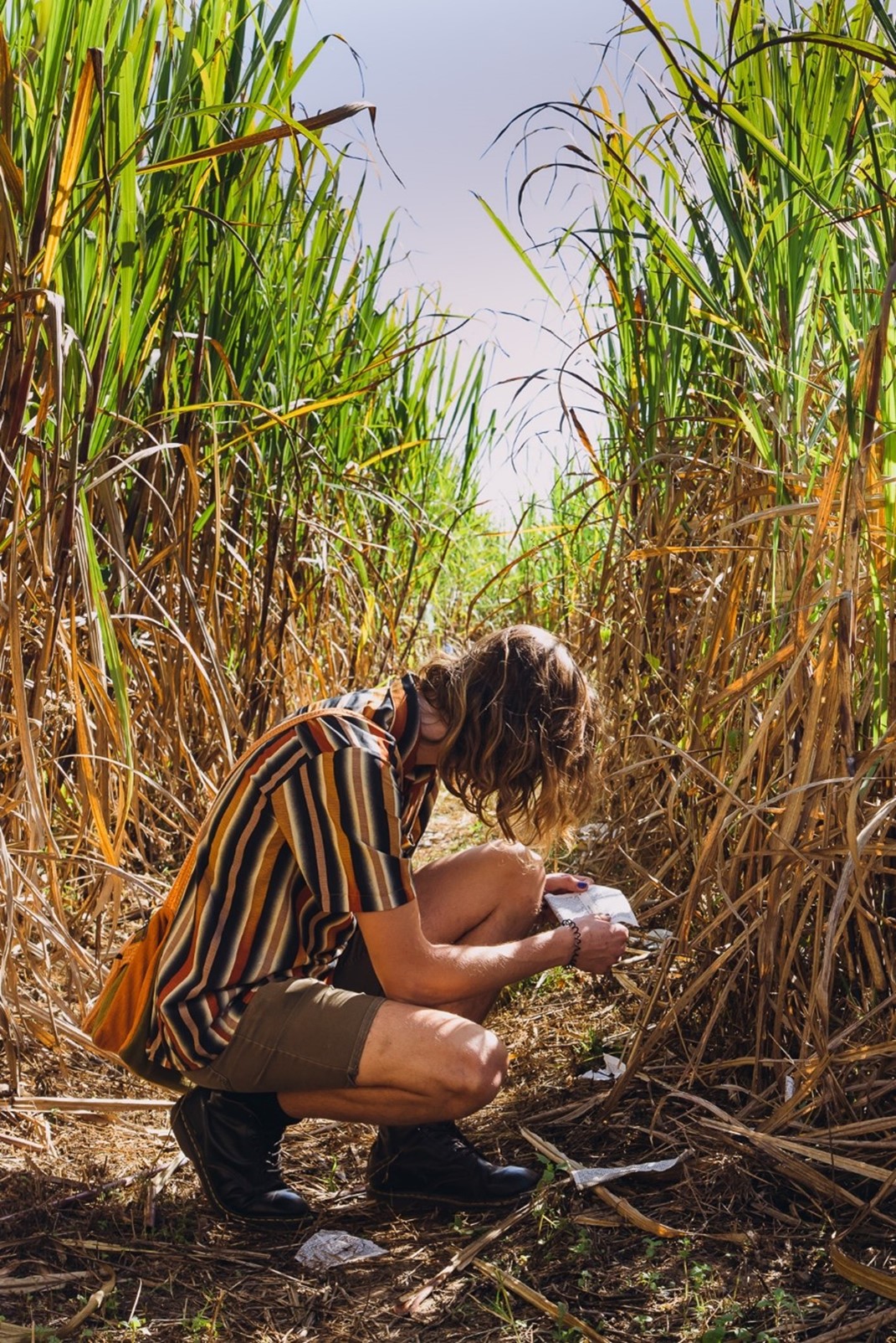 The 11 major site-specific commissions were produced by established Australian artists and set in significant natural environments across the North Queensland region. David Rowe’s crop circles installation in the sugar cane fields of Ingham, Site #272, reimagined otherness and the alien through satirical devices. A ‘tin foil hat’ was mandatory to enter the work and defend against ‘thought excavation’.