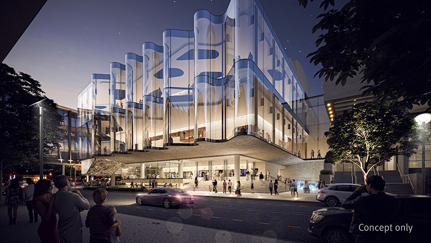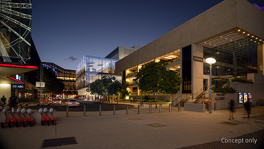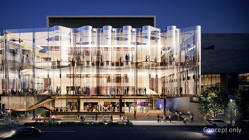 Glasshouse Theatre exterior concept illustration - download this image.